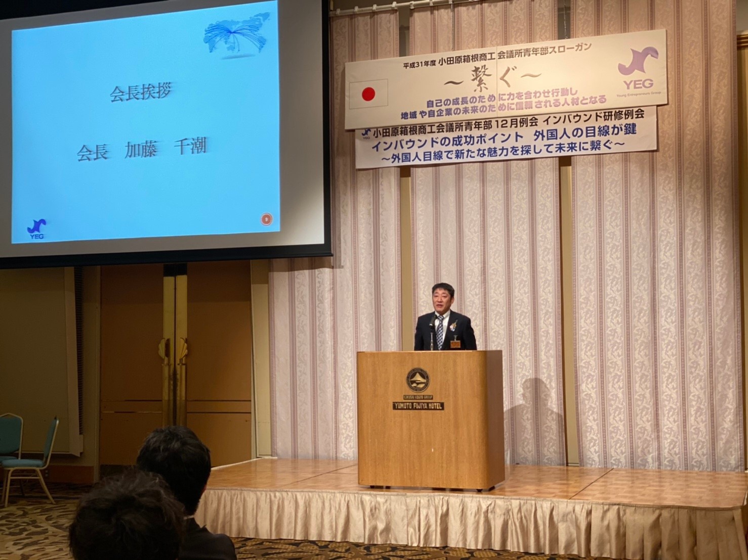 12/20(木)、湯本富士屋ホテルにて12月例会「インバウンドの成功ポイント 外国人の目線が鍵 ~外国人目線で新たな魅力を探して未来に繫ぐ~」が開催されました。