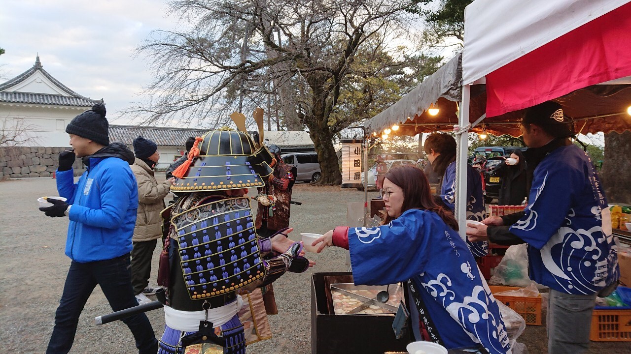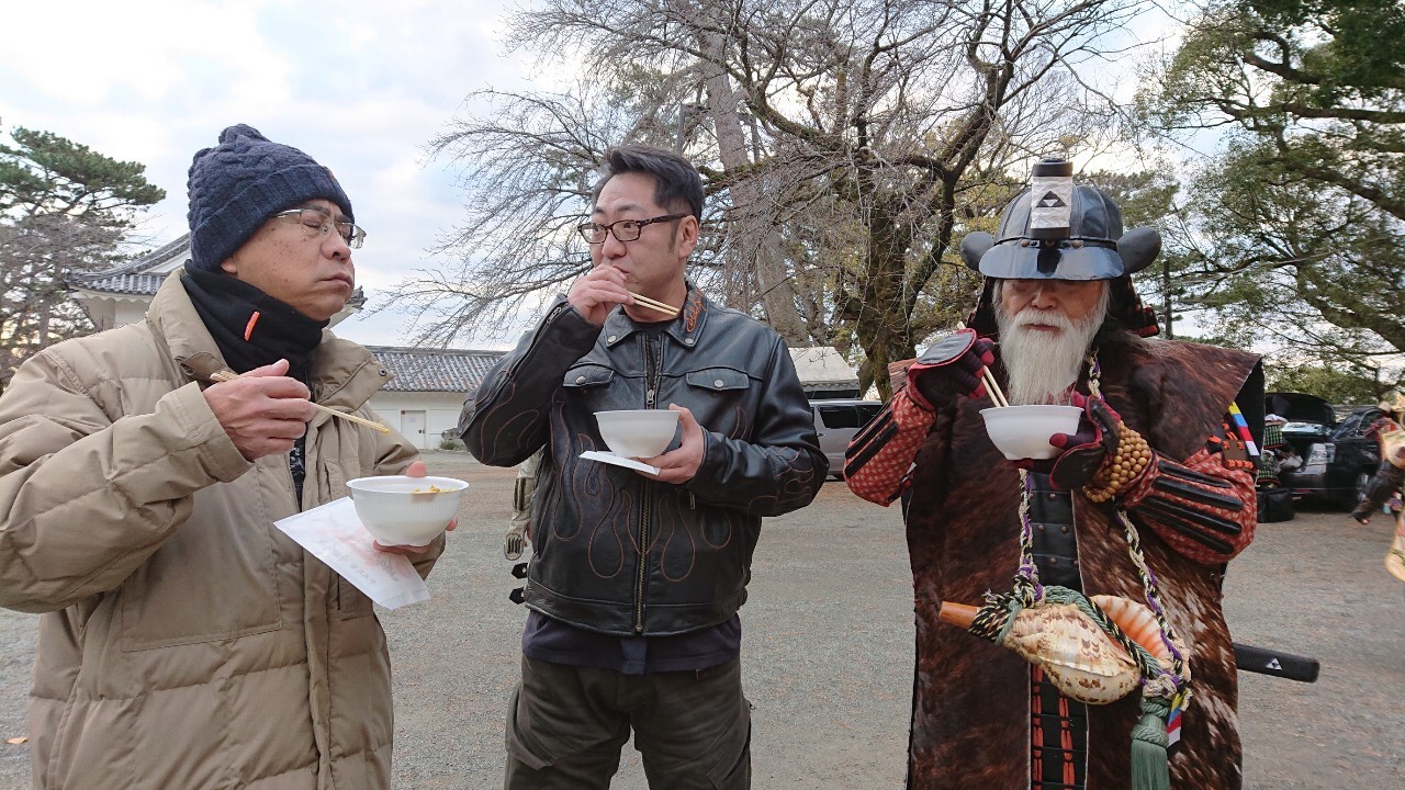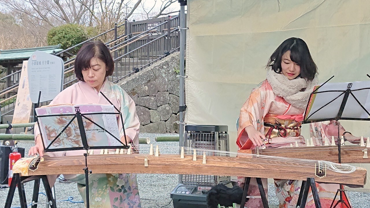 そして、温かいおでんを食べてほっと一息。そして、琴の美しい音色が本丸広場に響きました。