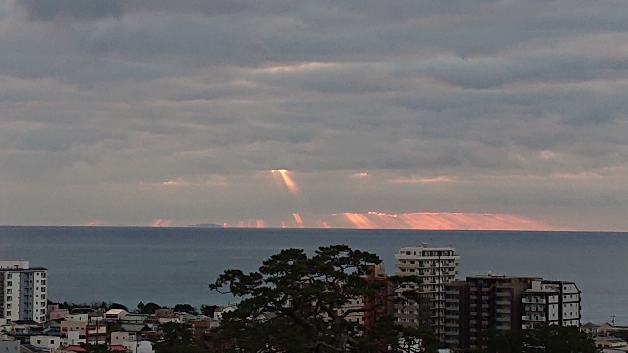 残念ながら今年は雲がかかって日の出の様子がはっきりとは見えませんでしたが、空がほんのり赤くなっていくのを確認できました。