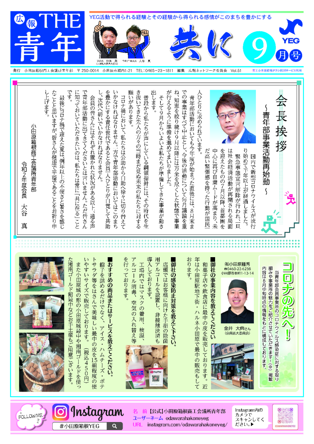 青年部事業活動再始動に向けての会長挨拶や、「コロナの先へ!」など取り上げております!