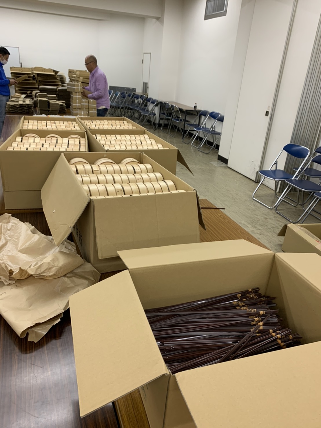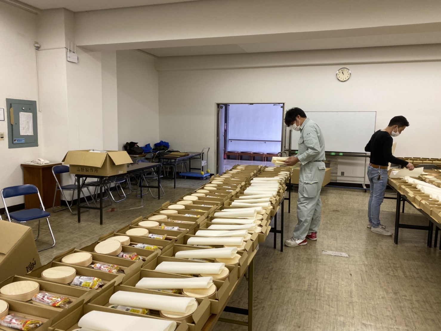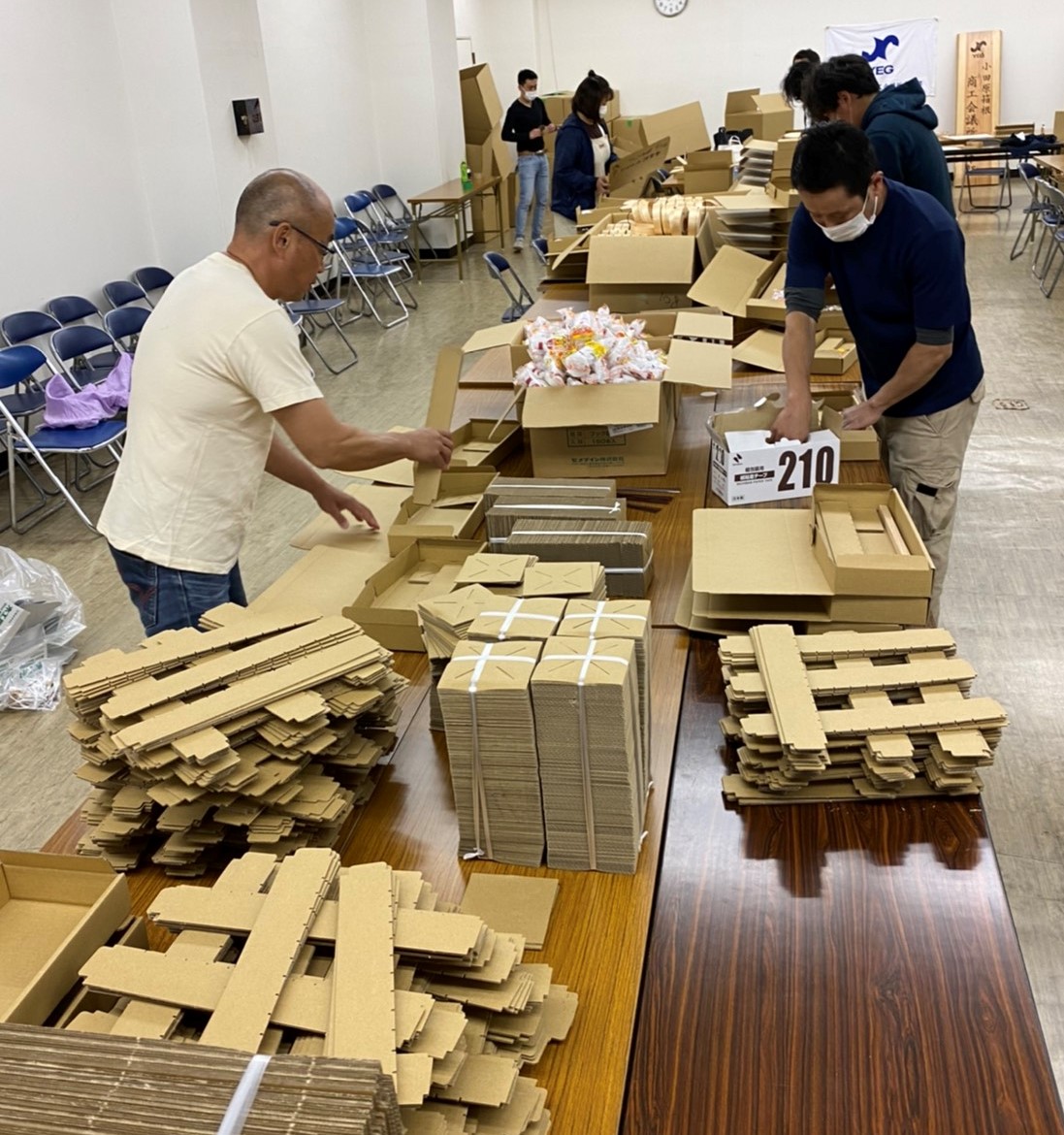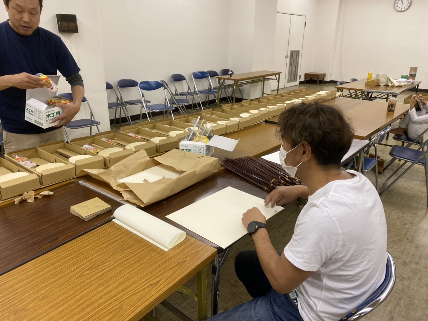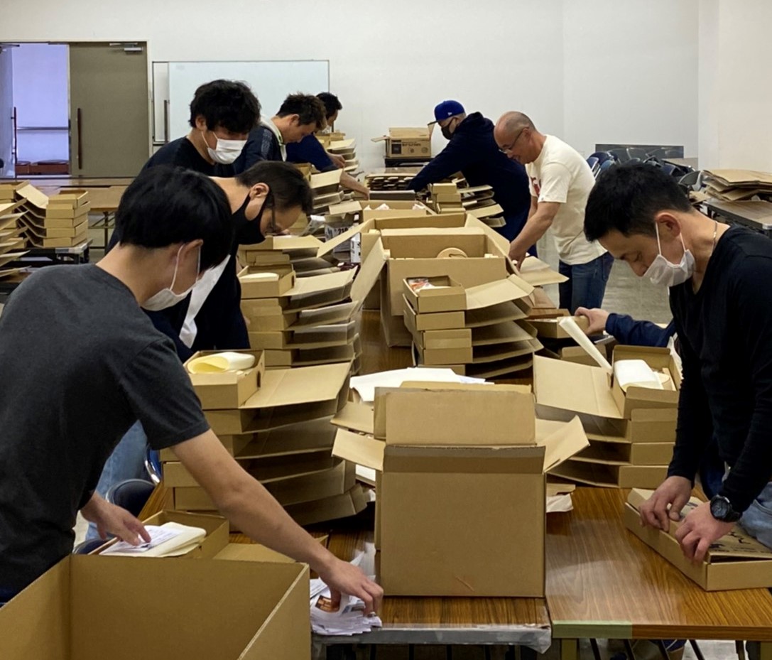 今年度は小田原市内の小学校で毎年開催している「小田原ちょうちん製作指導教室」がコロナ禍のため開催出来ませんでしたが、引き続き小田原の伝統文化である小田原ちょうちんの歴史や作り方を学んでいただきたいとの思いから、過去に青年部の先輩たちが製作した「小田原ちょうちん製作キット」をヒントに、例年と同じく今年の児童たちも体験できるよう、「小田原ちょうちん製作キット」を用意し、11月22日(日)と23日(月)の2日間、各学校へ配布するための準備作業を行いました!