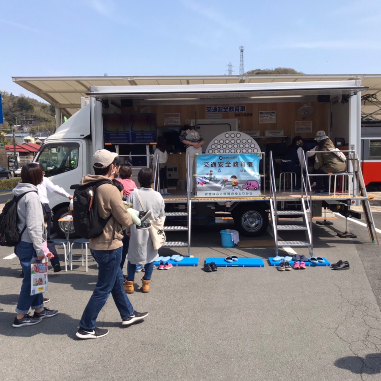 また、小田原警察署ご協力による交通安全教習車「ゆとり号」も設置され、子どもたちが道路の歩き方や自転車のシミュレーションを体験し交通安全を学んだり、パトカーや白バイに乗って記念撮影をされたりしていました(^^)v