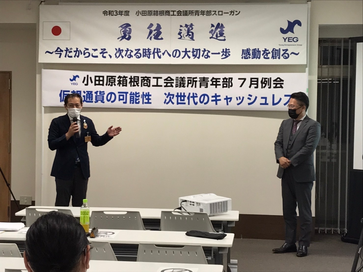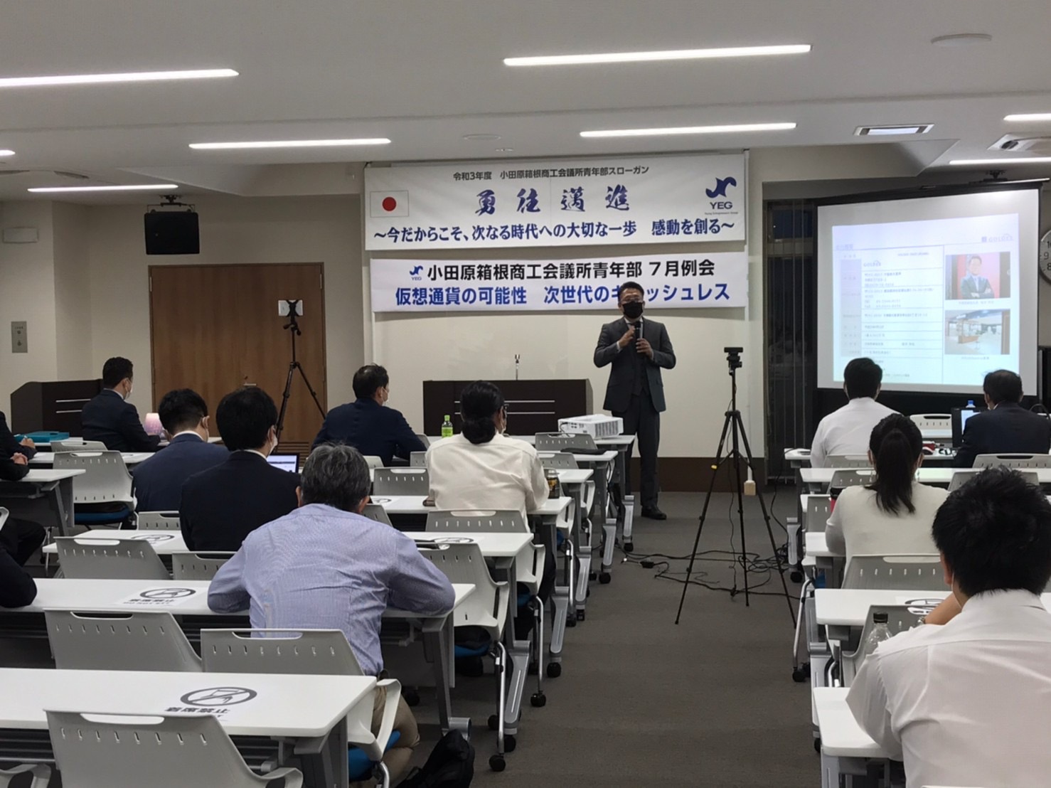 まん延防止等重点措置の延長の中、7/15(木)に小田原箱根商工会議所2階大会議室で仮想通貨というキーワードをテーマに7月例会「仮想通貨の可能性 次世代のキャッシュレス」を開催した。