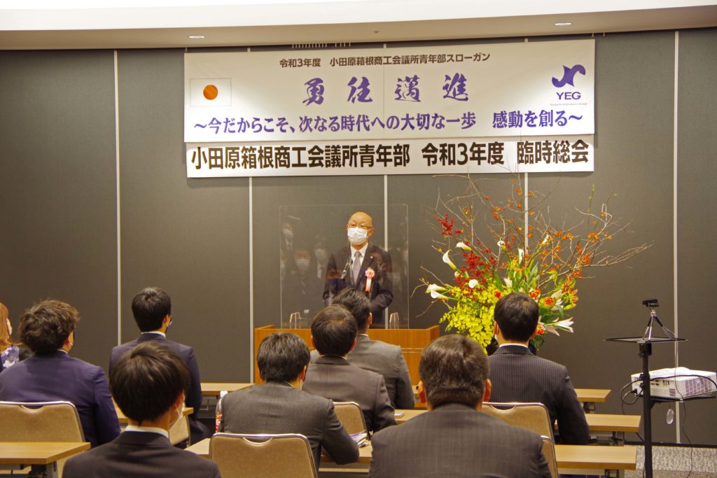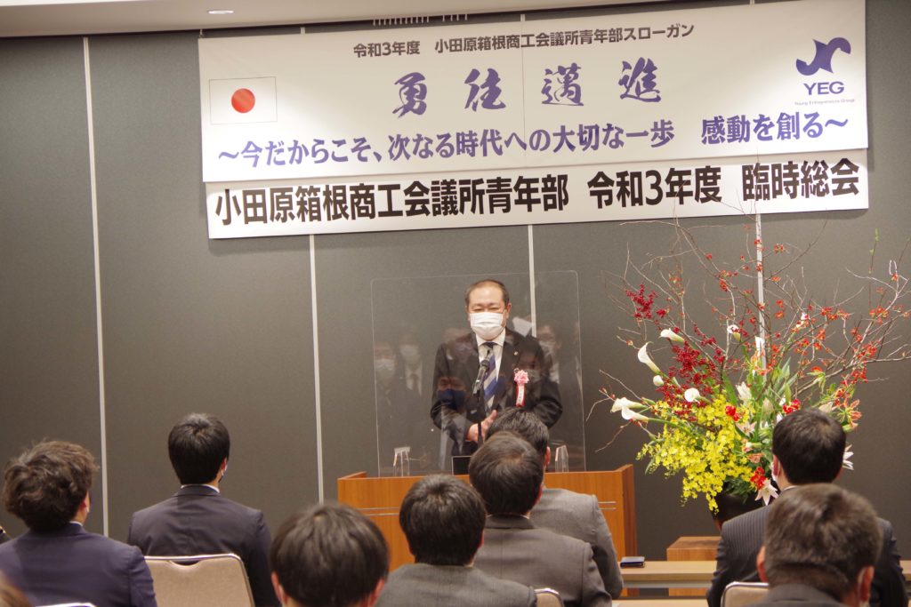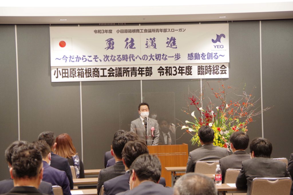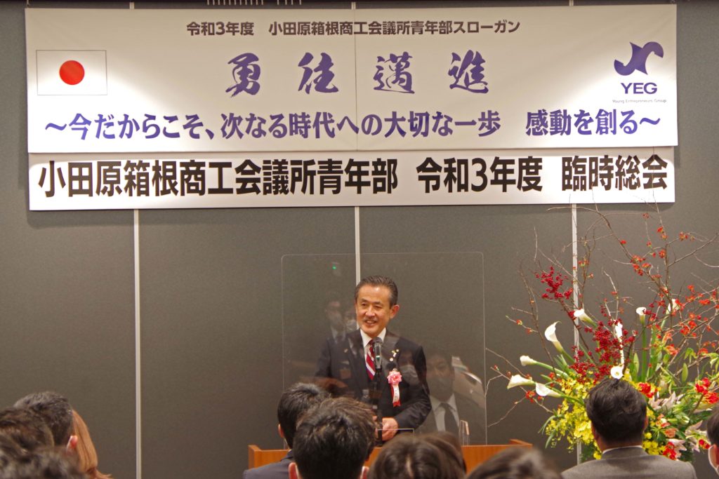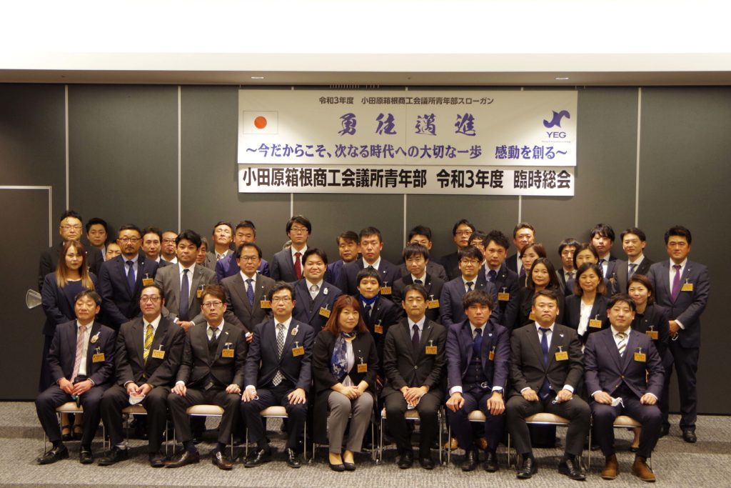 小田原箱根YEGです! 令和4年1月20日(木)、ミナカ小田原コンベンションホール並びにZoom配信による「小田原箱根商工会議所青年部 令和3年度臨時総会」が開催され、令和4年度会長予定者として牧野澄世君と令和4年度理事予定者が承認されました。(例年では同時開催となる賀詞交歓会は新型コロナウィルス感染防止の観点から中止。)