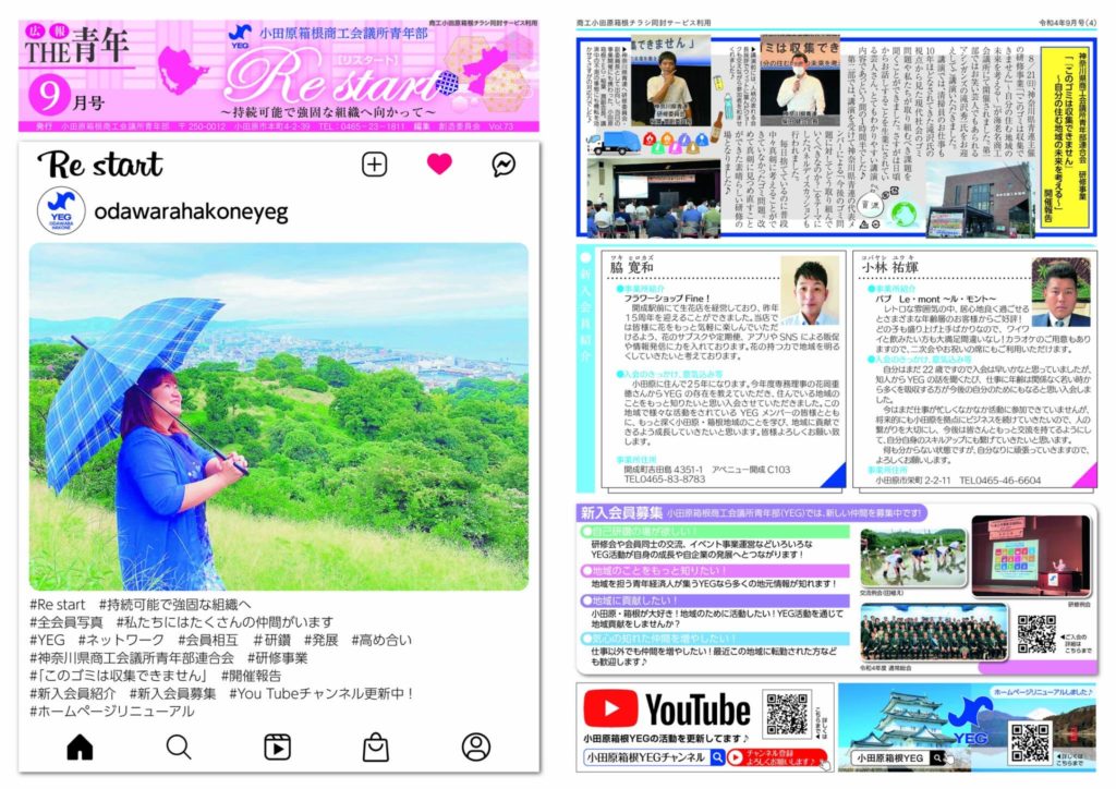9月号表紙の会長の写真はインスタグラム風にアレンジされたポップな雰囲気となっていますね。会長の笑顔と小田原の街がマッチしていて素敵ですね。