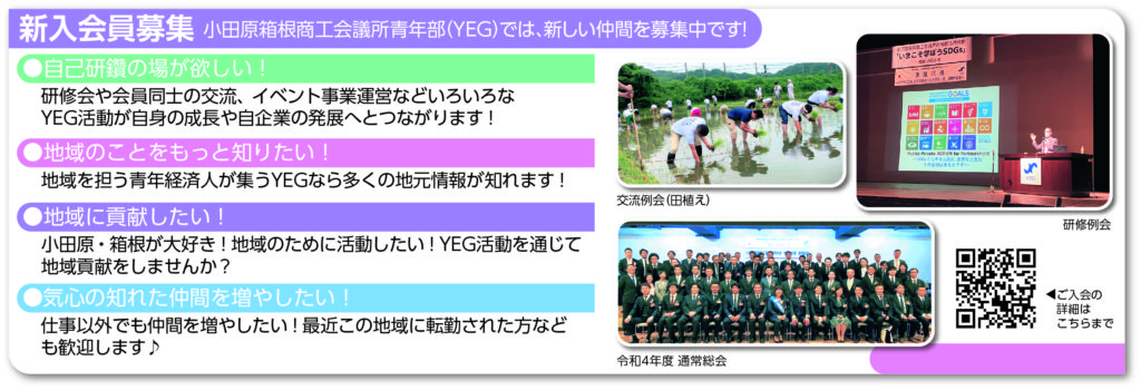 ※尚、「ザ・青年」は通常は小田原箱根商工会議所会員事業所向けに紙ベースで発行していますが、令和4年度はペーパーレスの観点及びデジタルツールの活用によって多くの皆様にお届けできるよう、定期的に二次元コードでデータ発行させていただきます。