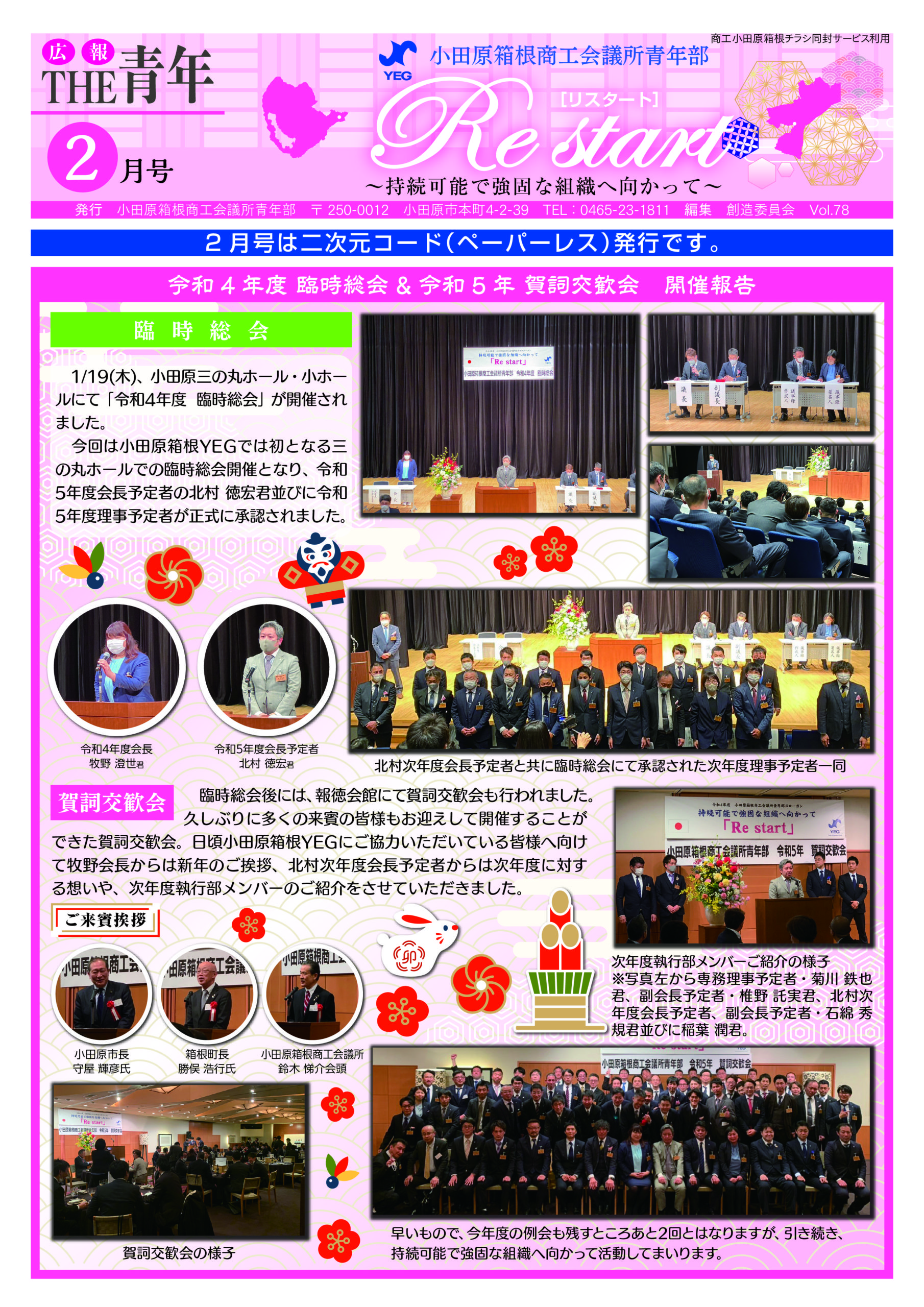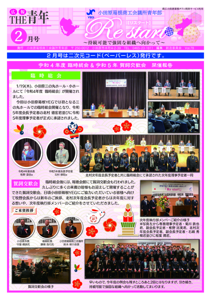 広報紙2月号は、当ホームページ、青年部SNSアカウント、小田原箱根商工会議所会員事業所向けに発行される「商工小田原箱根」紙面に掲載の二次元コードからアクセスしてご覧いただけます。
