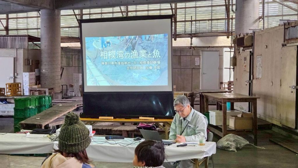 当日は神奈川県水産試験場の職員の方をお招きし、相模湾の特徴や漁業、魚介類の種類等を学び、その後魚屋が教える魚のさばき方教室に参加し、実際に自ら魚をさばいて海鮮丼を作って試食することにより海から食卓までの一連の流れを五感で感じ、食材への敬意と技術の継承をご体験頂くイベントとなりました。