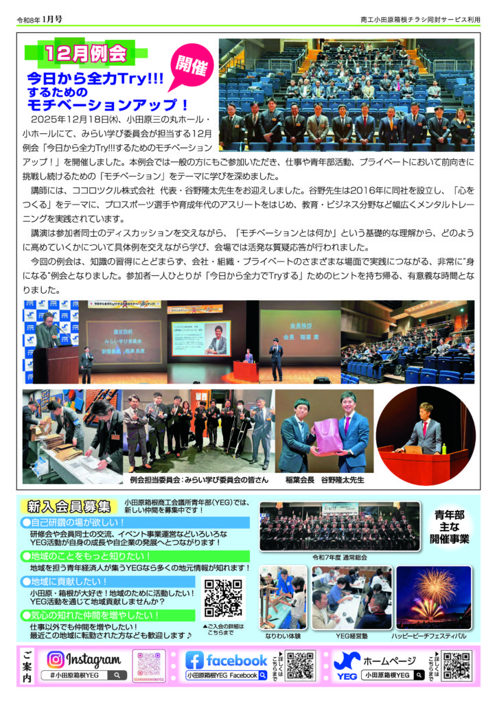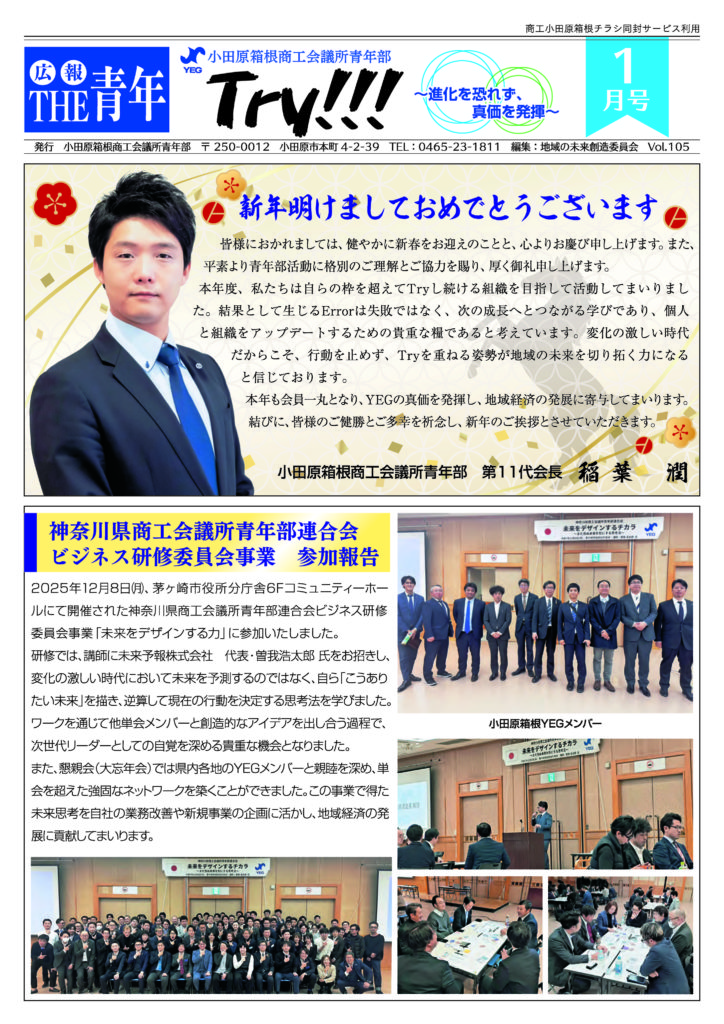 小田原箱根商工会議所青年部 / Odawara Hakone YEG Sat, 03 Jan 2026 02:32:51 +0000 ja hourly 1 https://wordpress.org/?v=6.4.7 【令和7年度】広報紙「ザ・青年」1月号の発行 /2026/01/25/%e3%80%90%e4%bb%a4%e5%92%8c7%e5%b9%b4%e5%ba%a6%e3%80%91%e5%ba%83%e5%a0%b1%e7%b4%99%e3%80%8c%e3%82%b6%e3%83%bb%e9%9d%92%e5%b9%b4%e3%80%8d1%e6%9c%88%e5%8f%b7%e3%81%ae%e7%99%ba%e8%a1%8c/ /2026/01/25/%e3%80%90%e4%bb%a4%e5%92%8c7%e5%b9%b4%e5%ba%a6%e3%80%91%e5%ba%83%e5%a0%b1%e7%b4%99%e3%80%8c%e3%82%b6%e3%83%bb%e9%9d%92%e5%b9%b4%e3%80%8d1%e6%9c%88%e5%8f%b7%e3%81%ae%e7%99%ba%e8%a1%8c/#respond Sun, 25 Jan 2026 02:15:40 +0000 /?p=5054 みなさん、こんにちは!